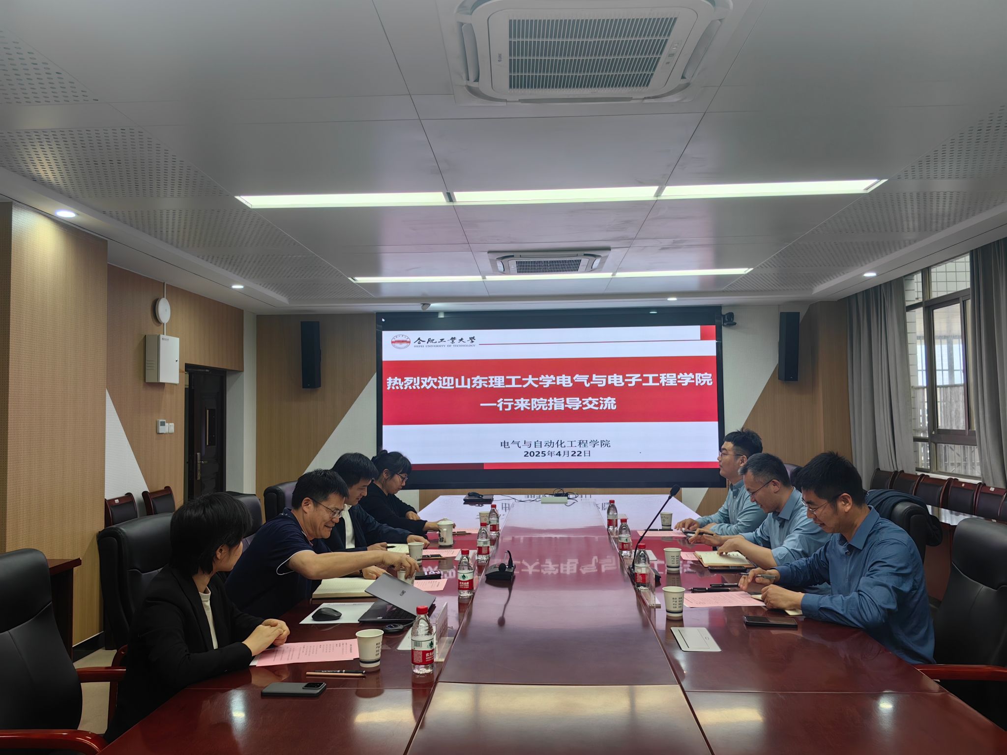 4月22日下午,山东理工大学电气与电子工程学院副院长焦提操一行赴我院开展调研交流活动,交流座谈会在逸夫楼1009会议室举行。山东理工大学电气与电子工程学院副院长高明亮、教师代表肖传亮,澳门新甫京娱乐娱城平台党委书记冯航、副院长吴红斌、电气工程系主任马明娜、韩平平老师出席此次会议,会议由吴红斌主持。