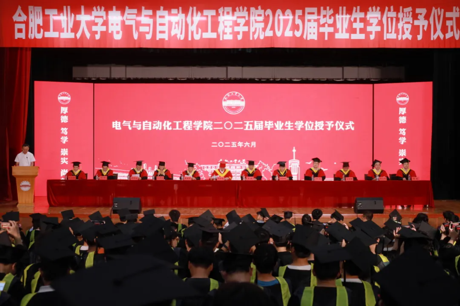 与会领导老师为527名学士学位获得者、280名硕士学位获得者和11名博士学位获得者颁发了学位证书,扶正流苏并合影留念。2025届电气学子将以更加昂扬饱满的姿态“熠路碳索”,迎接新的人生旅程!