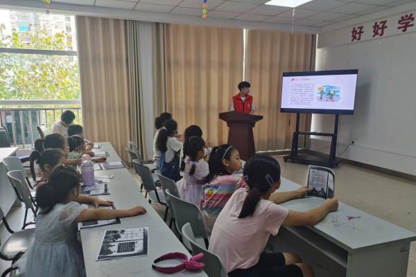 党支部学生党员来到瑞园睦邻生活馆,为社区的小朋友们上了一堂党史启蒙教育课,介绍了改革开放以来我国取得的成就、“九一八”事变后中华民族艰苦卓绝的抗日历程和“八一勋章”获得者的模范事迹。为让小朋友们能更加直观地了解“九一八”事变的经过和中华民族反抗侵略的艰苦斗争历程,主讲人将真实史料视频材料引入课堂。随后,课堂进入了互动环节,主讲人围绕党史知识开展趣味问答,现场气氛活跃。本次活动收效颇丰,小朋友们纷纷发言,今后将向排雷英雄杜富国、防护工程专家钱七虎、钢铁战士麦贤得等先进楷模学习,为祖国发展做出贡献。