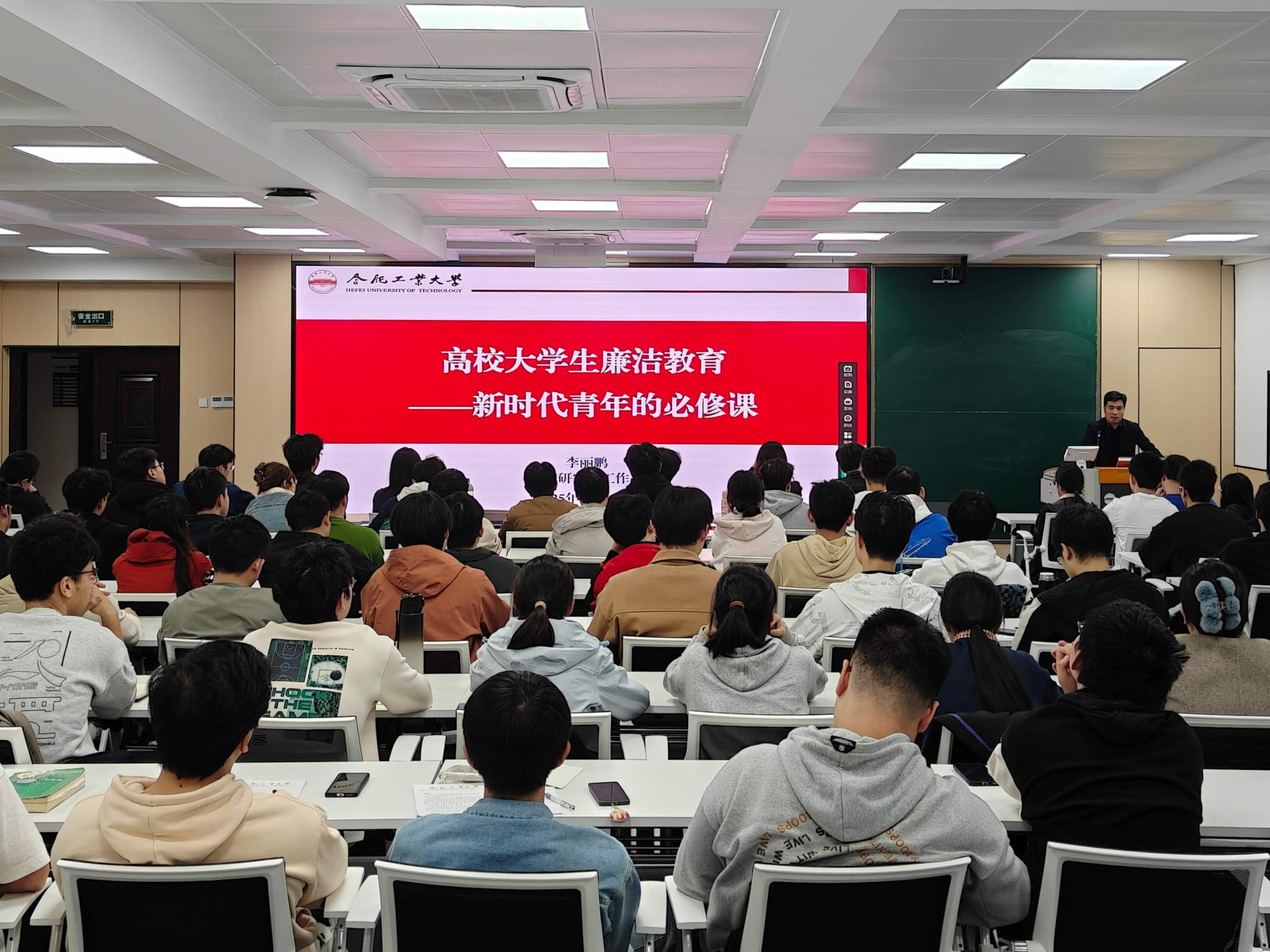 党委研究生工作部部长兼党委学生工作部副部长李丽鹏受邀主讲,他指出,党的十八大以来,以习近平同志为核心的党中央把加强新时代廉洁文化建设摆在更加突出的位置,作出一系列部署,提出明确要求。他阐述了廉洁教育对传承中华优秀传统文化、推进全面从严治党及大学生健康成长的核心价值,希望广大同学聚焦敬廉崇洁、求真务实、遵规守纪、艰苦朴素四大作风,加强理论学习,规范日常行为;引导全体学员树牢廉洁意识、强化组织观念、增强家国情怀。